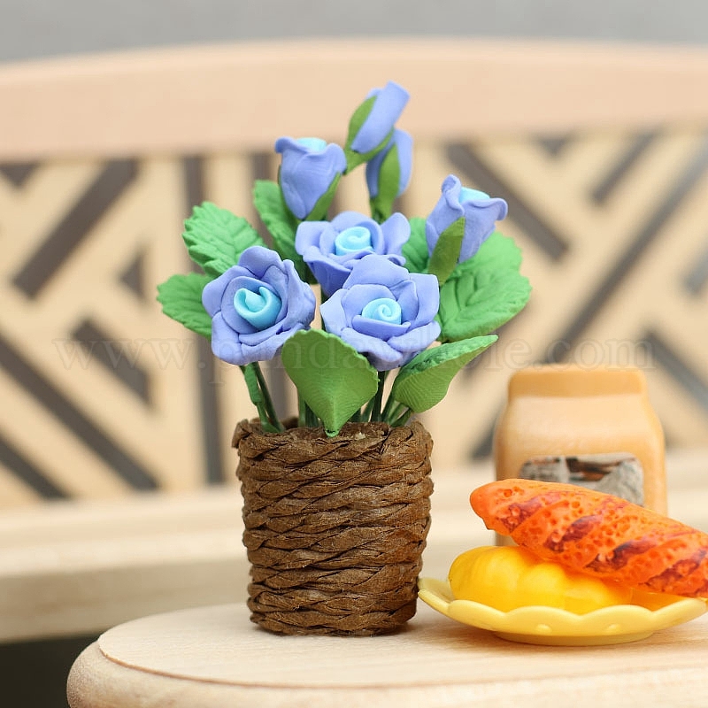 • Васильковый Миниатюрные украшения из смоляной розы в горшке, аксессуары для домашнего кукольного домика с микро-ландшафтом, притворяясь опорными украшениями, васильковый, 19x49 мм