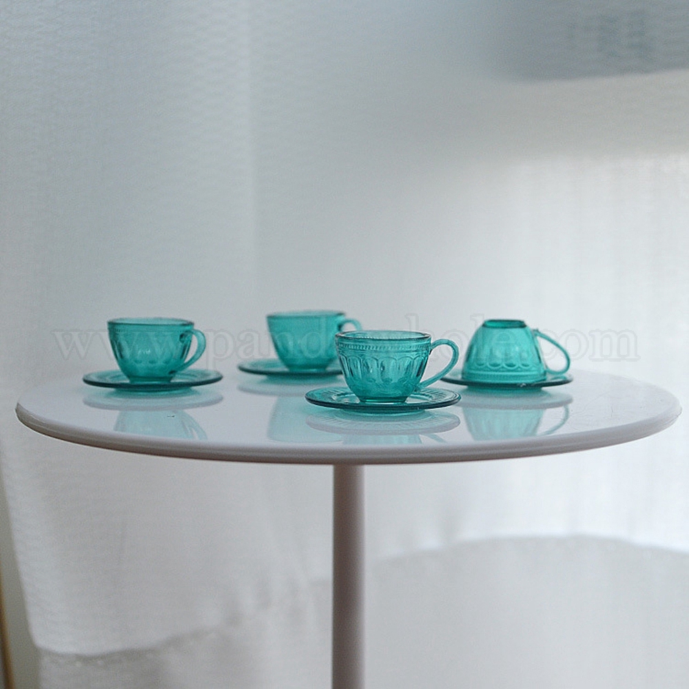 • Темно-бирюзовый Пластиковая модель чашки и блюдца, аксессуары для кукольного домика с микро-ландшафтом, притворяясь опорными украшениями, темные бирюзовый, 11x20 мм, 4 шт / комплект