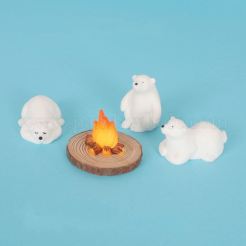Креативные миниатюрные милые наборы для украшения кукольного домика, смола и дерево блокируют семью медведей с огнем