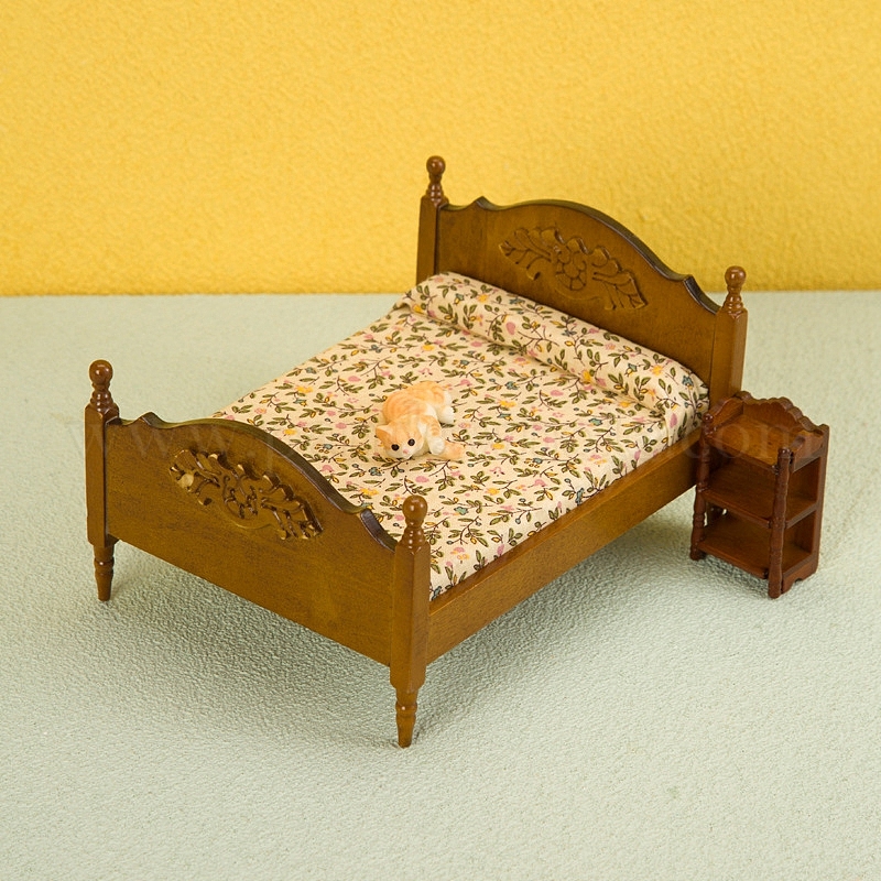 Двуспальная кровать из дерева и ткани в европейском стиле, аксессуары для кукольного домика с микро-ландшафтом, притворяясь опорными украшениями