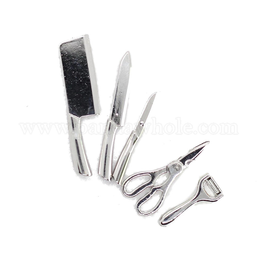 • Платина Миниатюрные реалистичные мини-сплавные кухонные принадлежности наборы ножей, аксессуары для кукольного домика с микро-ландшафтом, притворяясь опорными украшениями, платина, 34x17 мм