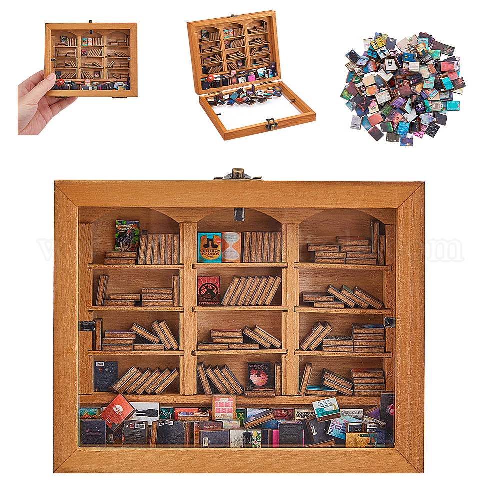 Деревянная книжная полка с акриловыми книгами, мини-модель, аксессуары для кукольного домика с микро-ландшафтом, притворяясь опорными украшениями