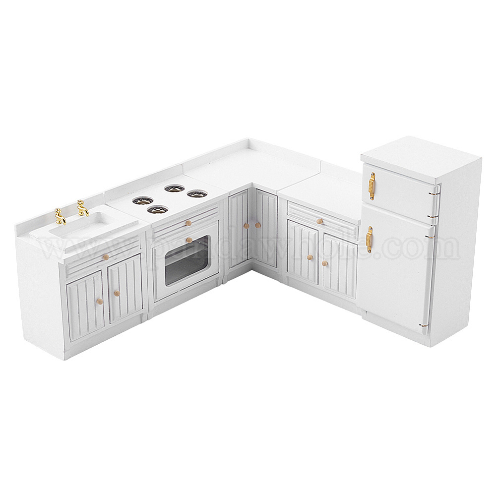 • Белый 5 шт. набор мини-шкафчиков из березовой древесины, аксессуары для украшения микроландшафта кукольного домика, белые, 62~76x50~75x87~127 мм