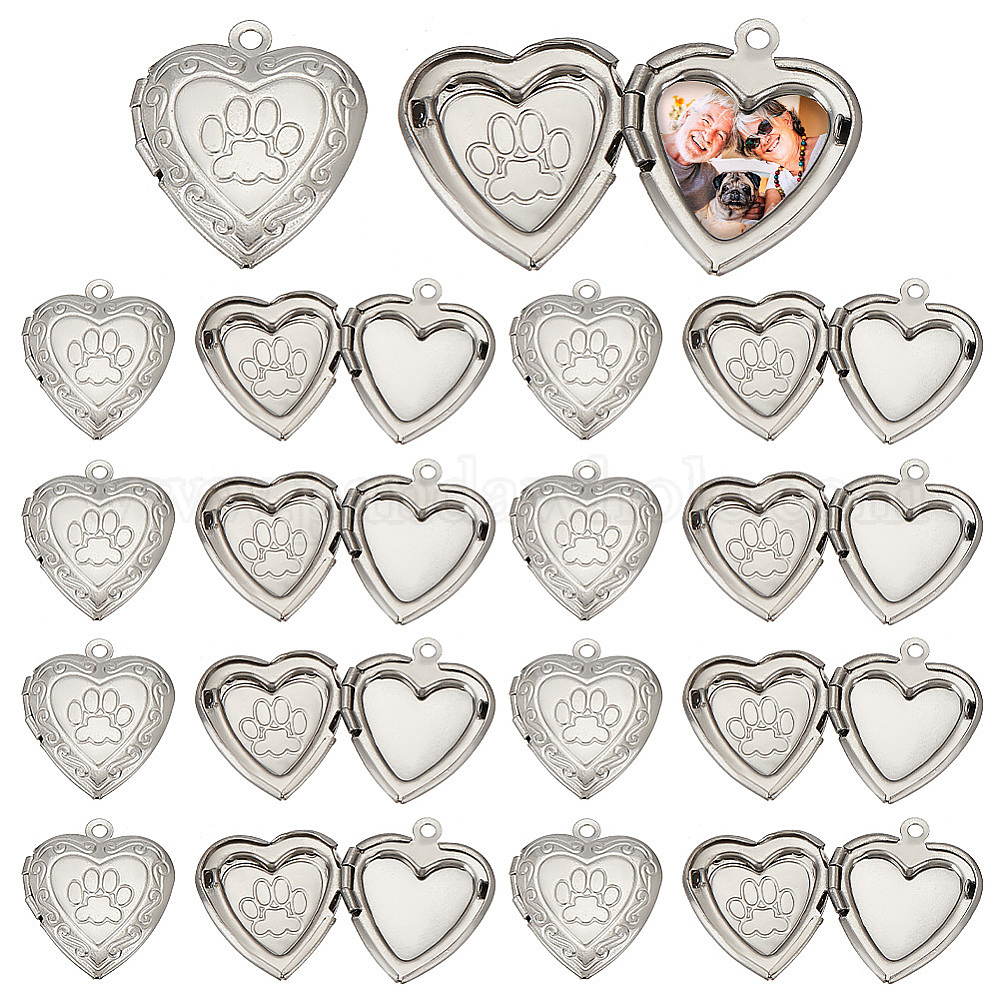 20шт. 304 подвески-медальоны из нержавеющей стали, подвеска в виде сердца с отпечатком лапы (02QNAK)