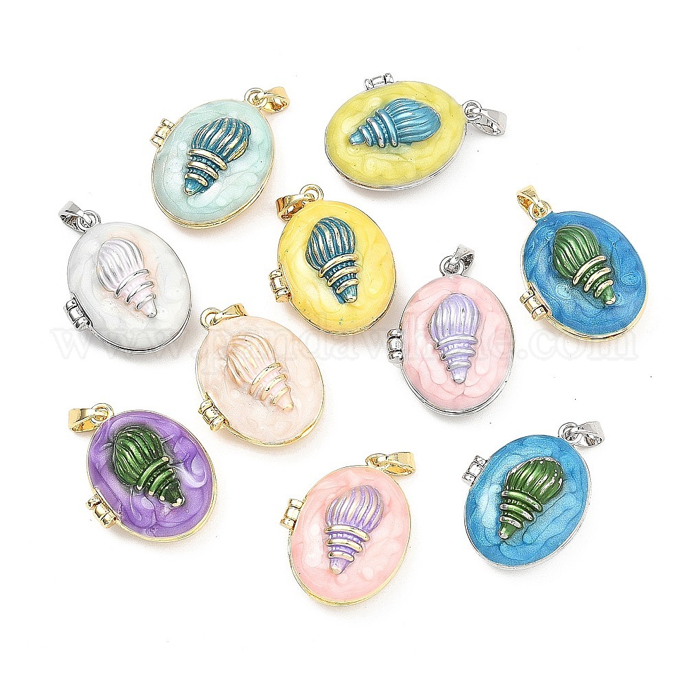 304 Кулоны-медальоны из нержавеющей стали с эмалью, овал с подвесками-ракушками