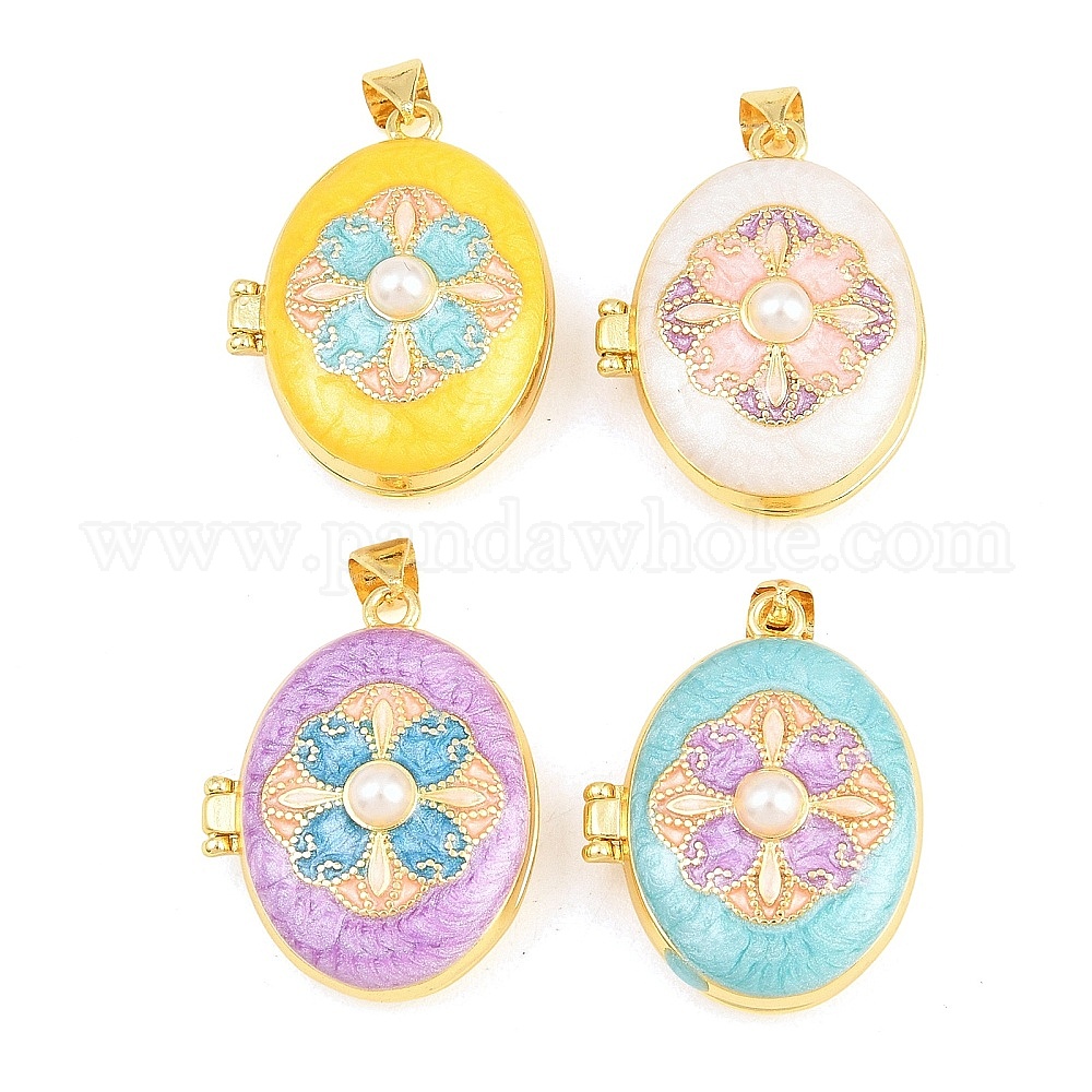 Подвески латуни медальон, с эмалью и абс пластика имитация жемчуга, без кадмия и без свинца, реальный 18 k позолоченный, стойки покрытие, долговечный, цветок с овальными подвесками