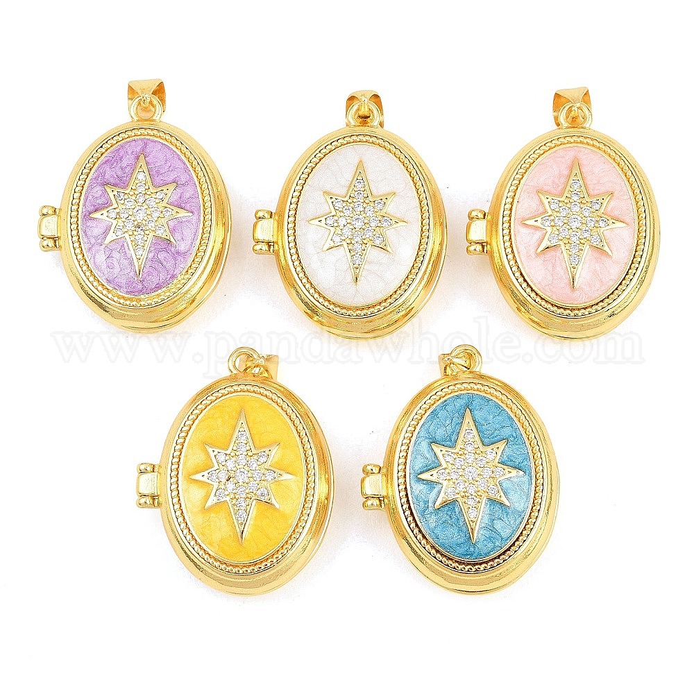 Подвески латуни медальон, с эмалью и прозрачным кубическим цирконием, без кадмия и без свинца, реальный 18 k позолоченный, стойки покрытие, долговечный, звезда с овальными подвесками (03B2H2)