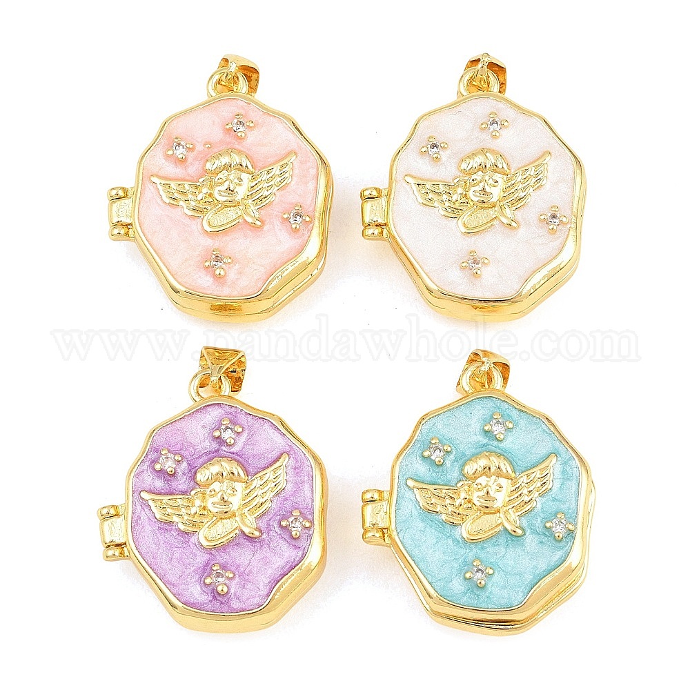Подвески латуни медальон, с эмалью и прозрачным кубическим цирконием, без кадмия и без свинца, реальный 18 k позолоченный, стойки покрытие, долговечный, ангельские прелести