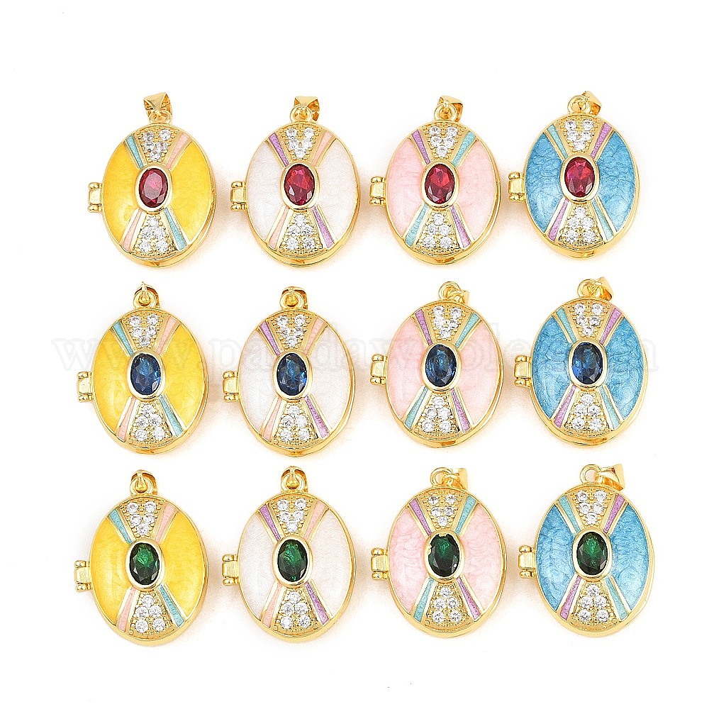 Подвески латуни медальон, с эмалью, стеклом и кубическим цирконием, без кадмия и без свинца, реальный 18 k позолоченный, стойки покрытие, долговечный, овальные амулеты (03B2M7)