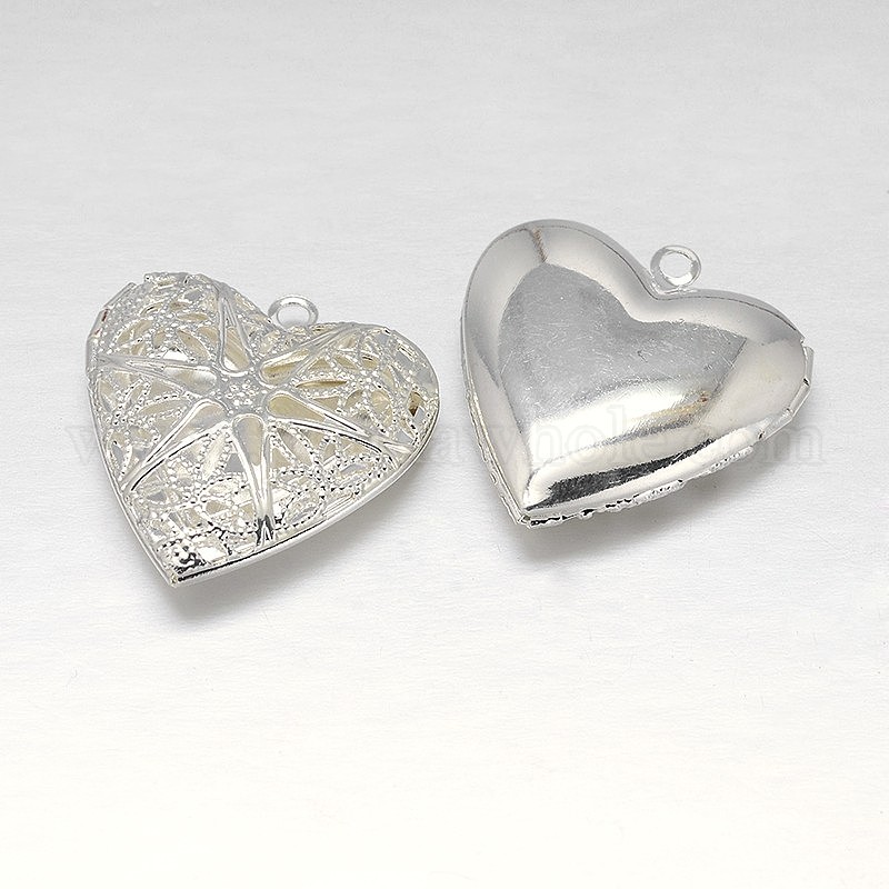 Филигранные сердца стойки покрытие латунь Locket фото подвески, без свинца, 26x26x7 мм, отверстия: 1 мм, внутренний: 19x18 мм