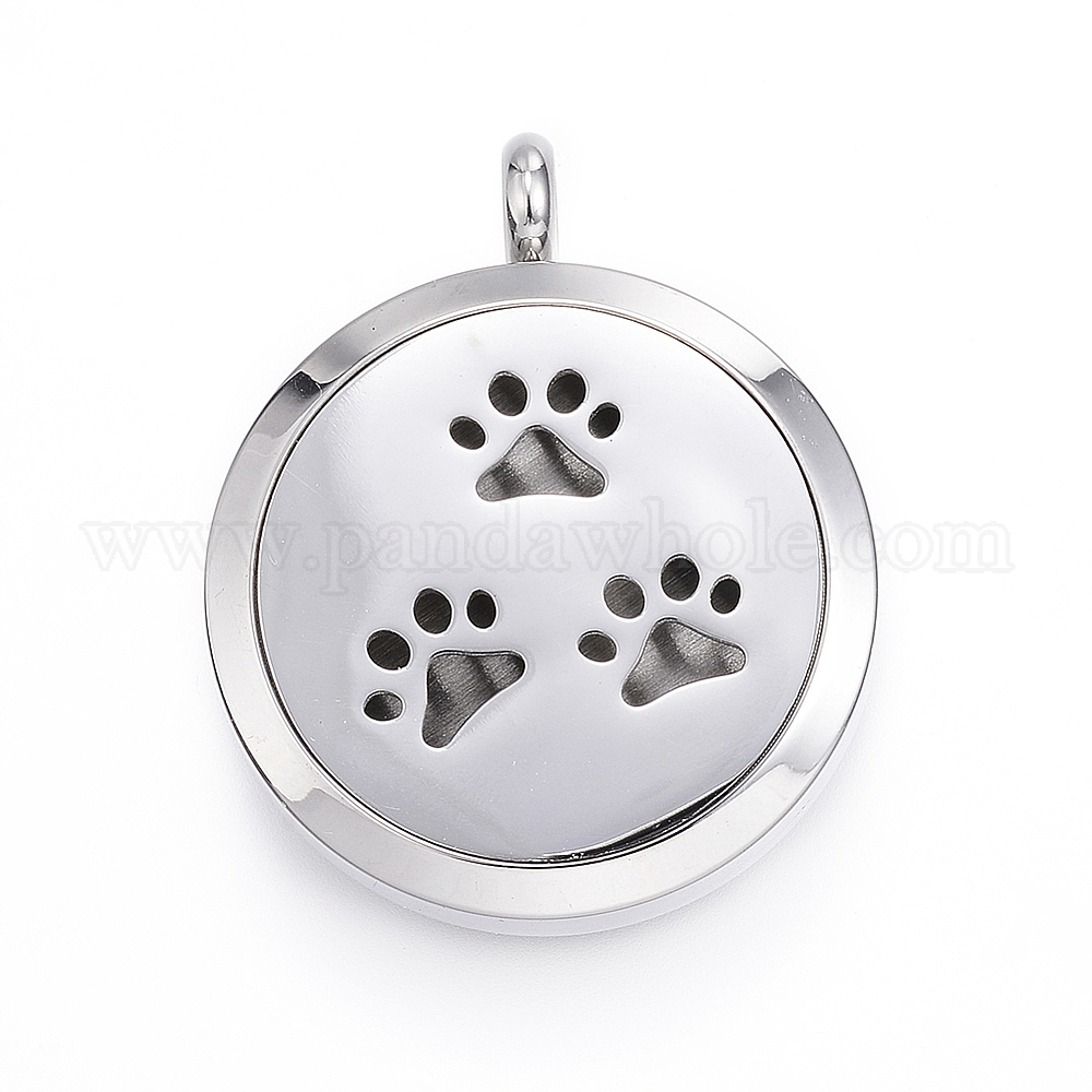 Ионное покрытие (ip) 316 хирургические подвески-медальоны из нержавеющей стали, С парфюмерной накладкой и магнитными застежками, плоский круглый с лапой