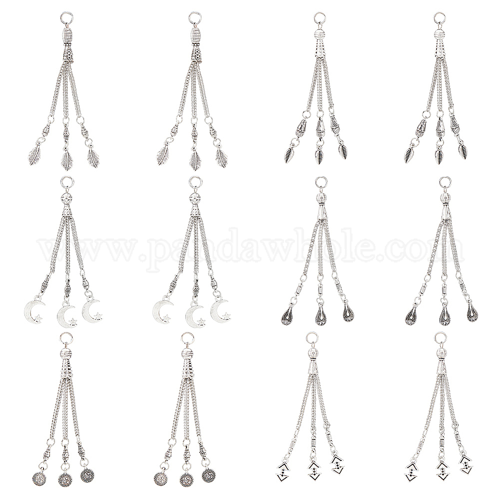 12 шт 6 стиль тибетский стиль сплав панцирная цепь кисточка большие подвески, перьевые подвески, капли, луна и лист