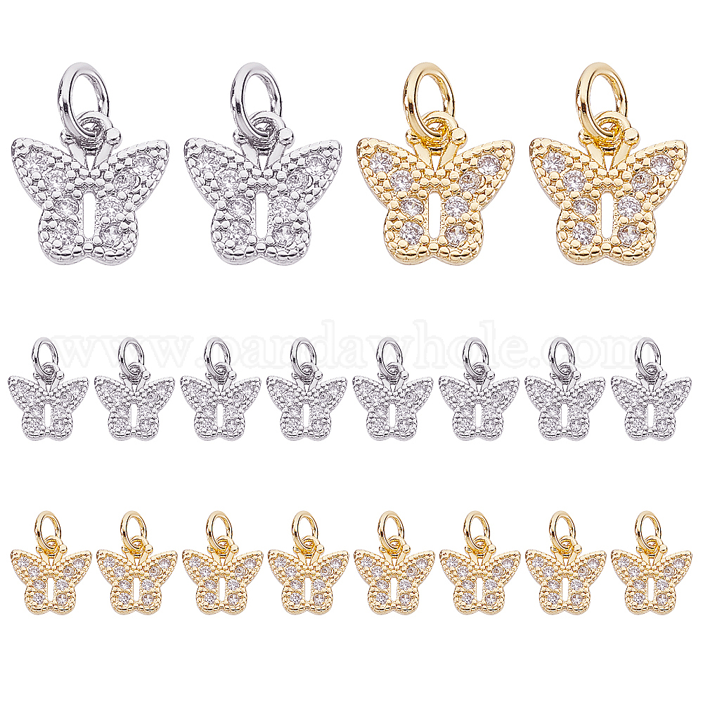 20 шт. 2 цвета латунные подвески из прозрачного кубического циркония с микропаве, с прыжковых колец, бабочка