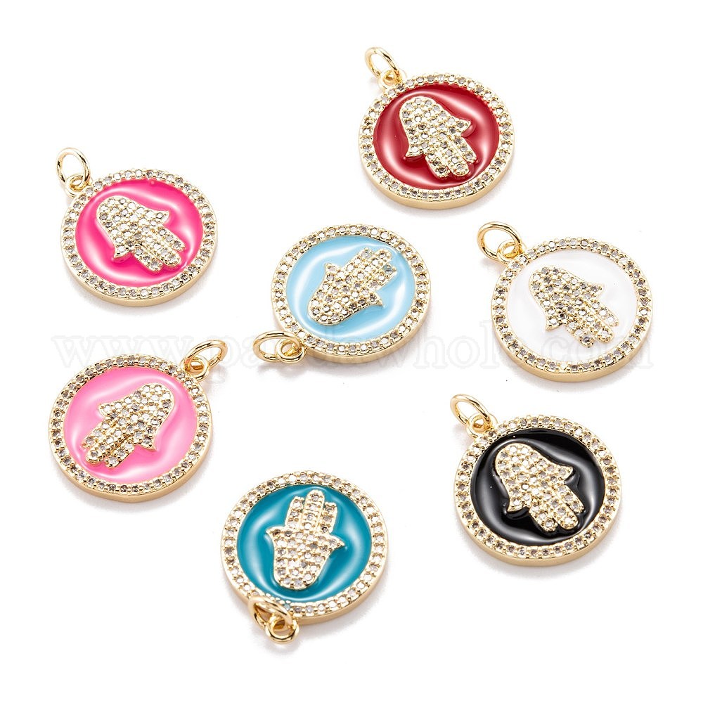 Настоящие 18 k позолоченные латунные подвески с микропаве и прозрачным кубическим цирконием, с эмалью и кольцом для прыжков, долговечный, плоские круглые с Хамса стороны