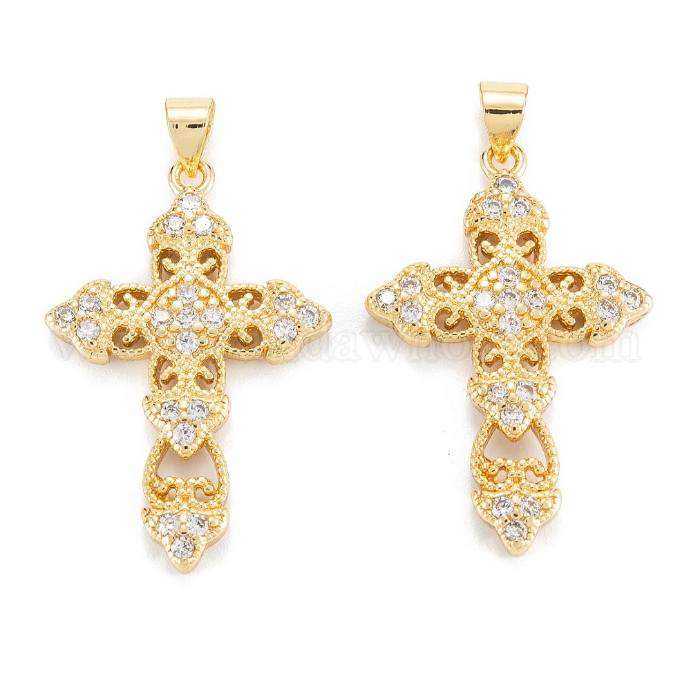 Латунные микропаве прозрачные подвески с фианитом, долговечный, крестик