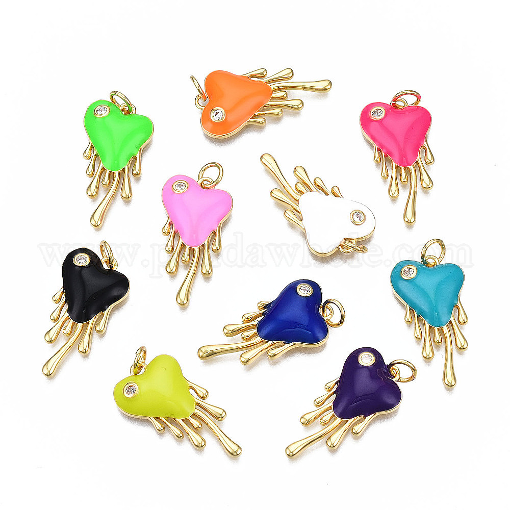 Кулоны с эмалью из латуни с прозрачным кубическим цирконием, с целью перехода в кольце, без кадмия, без никеля и без свинца, реальный 16 k позолоченный, сердце