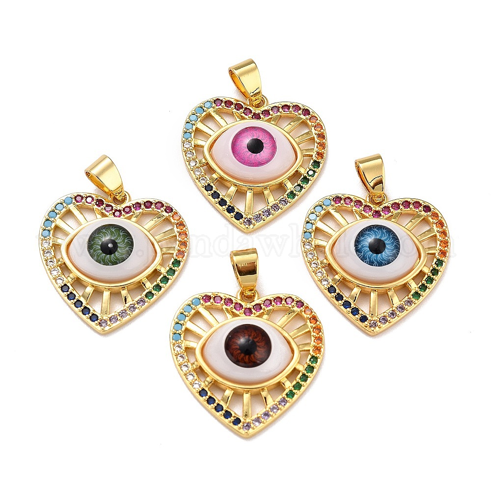 Латунные микро-паве красочные кубические циркониевые подвески, cmолой, реальный 18 k позолоченный, Сердце с глаз