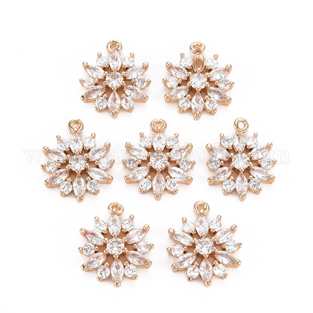 Покрытие стойки латунь микропаве прозрачные подвески из кубического циркония, долговечный, без кадмия и без свинца, цветок