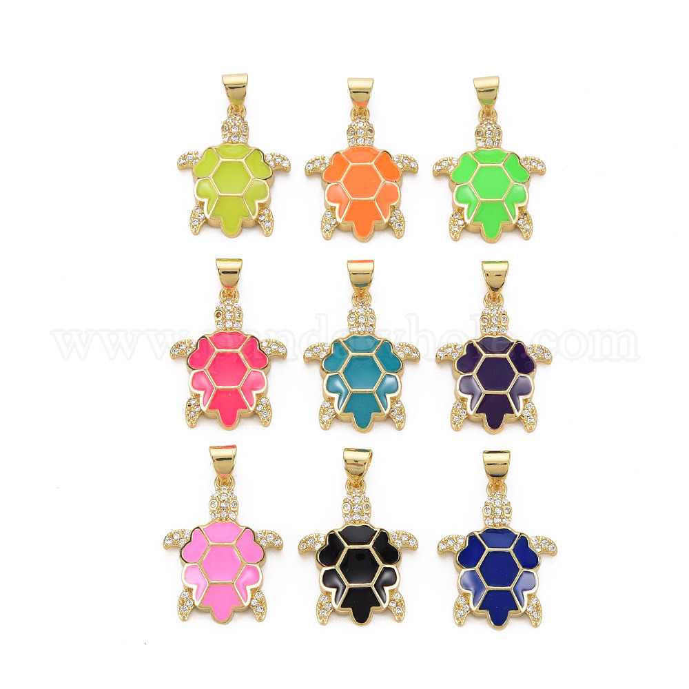 Латунные микро проложить кубического циркония подвески, с эмалью, без кадмия, без никеля и без свинца, реальный 16 k позолоченный, черепаха