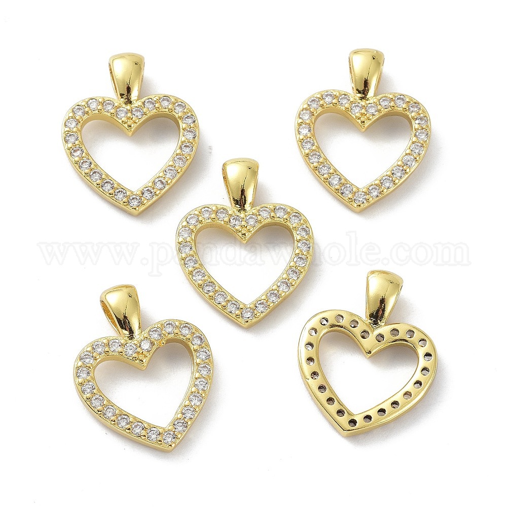 • Прозрачный Латуни циркония кубической подвески, долговечный, без свинца и без кадмия, реальный 18 k позолоченный, сердце, прозрачные, 19.5x15x2.5~5 мм, отверстие : 2.5x4 мм