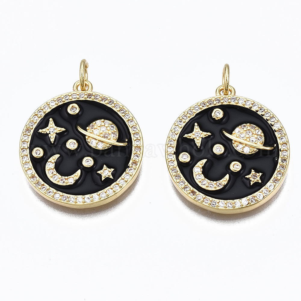Латунные микропаве прозрачные подвески с фианитом, с прыжковыми кольцами и эмалью, без никеля , плоско-круглые