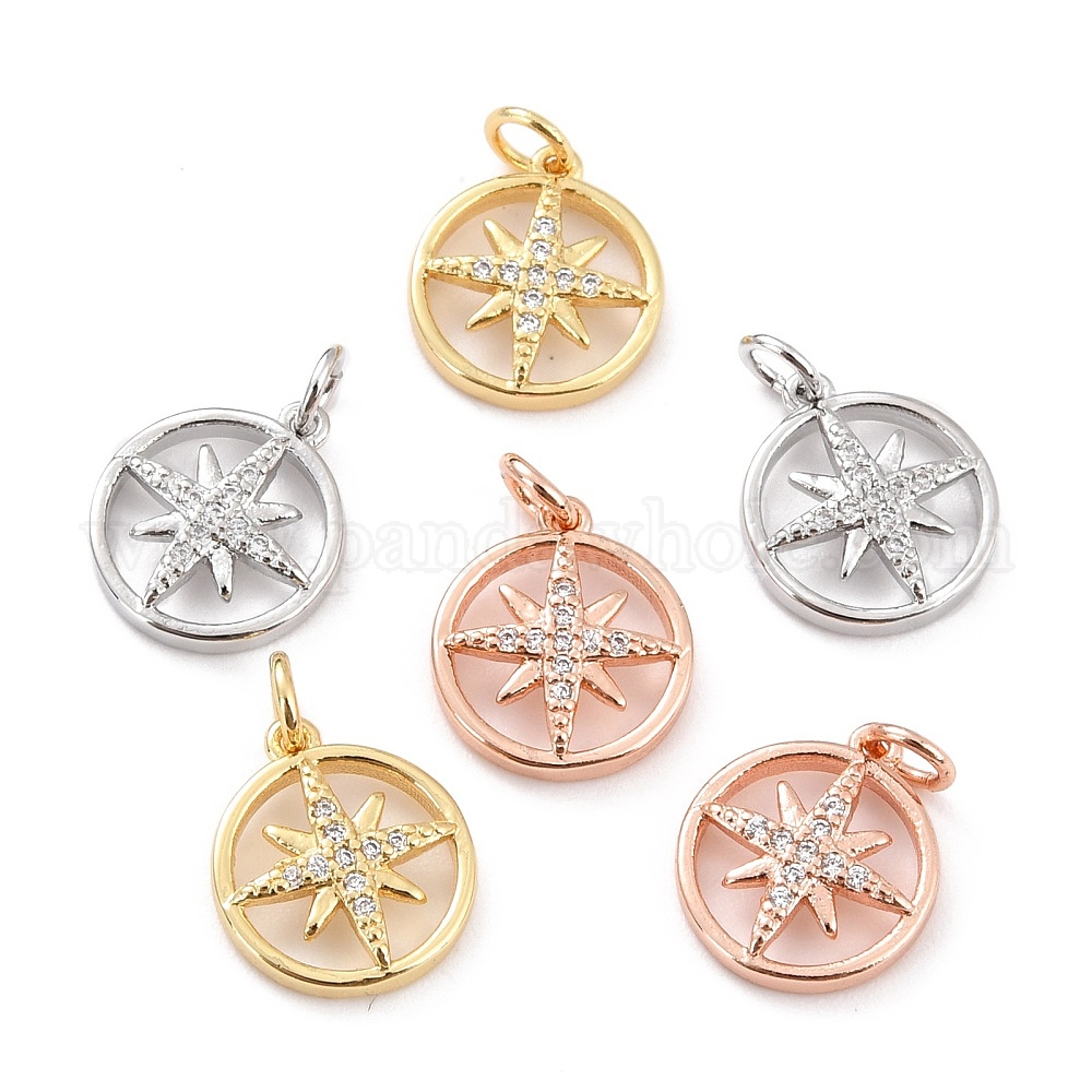 Латунные микро проложить кубического циркония подвески, с прыжковых колец, долговечный, без кадмия и без свинца, плоские круглые с солнцем
