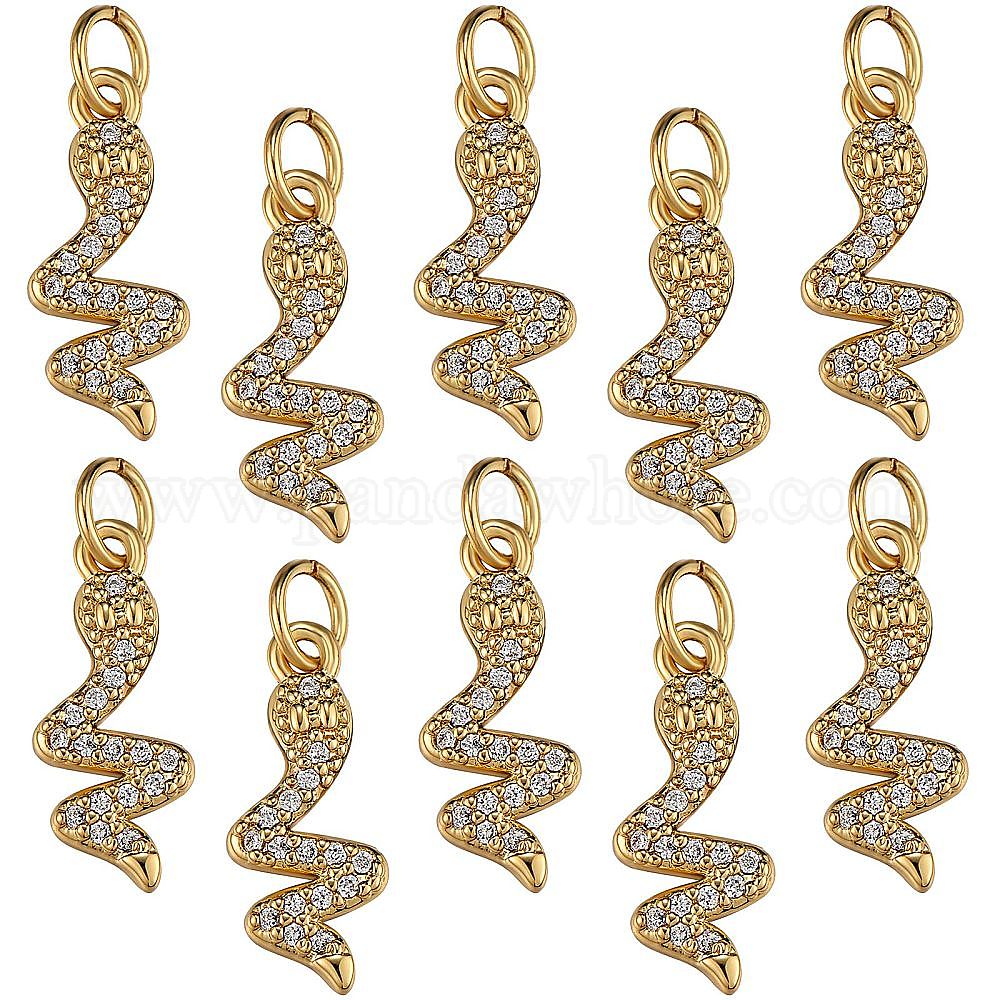 • Золотой 10 кулоны из латуни с прозрачным кубическим цирконием, долговечный, с целью перехода в кольце, змея, золотые, 15.5x6.5x2 мм, отверстие : 3 мм