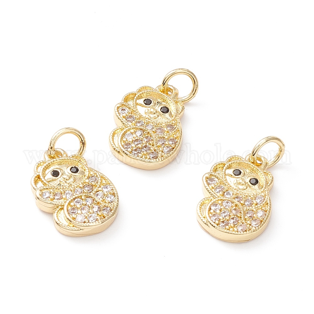 Латунные микропаве прозрачные подвески с фианитом, долговечный, без свинца и кадмия, панда
