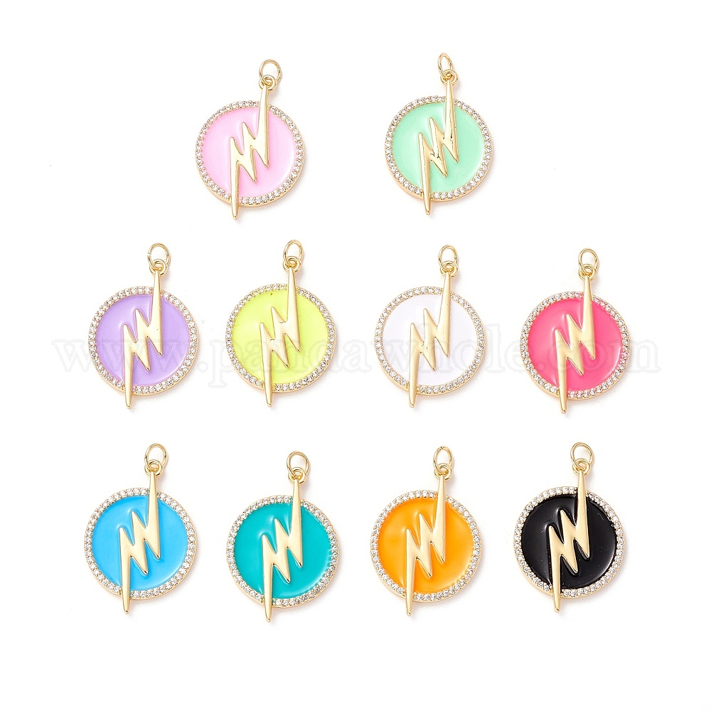 Латунные микропаве прозрачные подвески с фианитом, с эмалью и кольцом для прыжков, реальный 18 k позолоченный, без свинца, без кадмии и без никеля, плоские круглые с молнией (02B5EK)