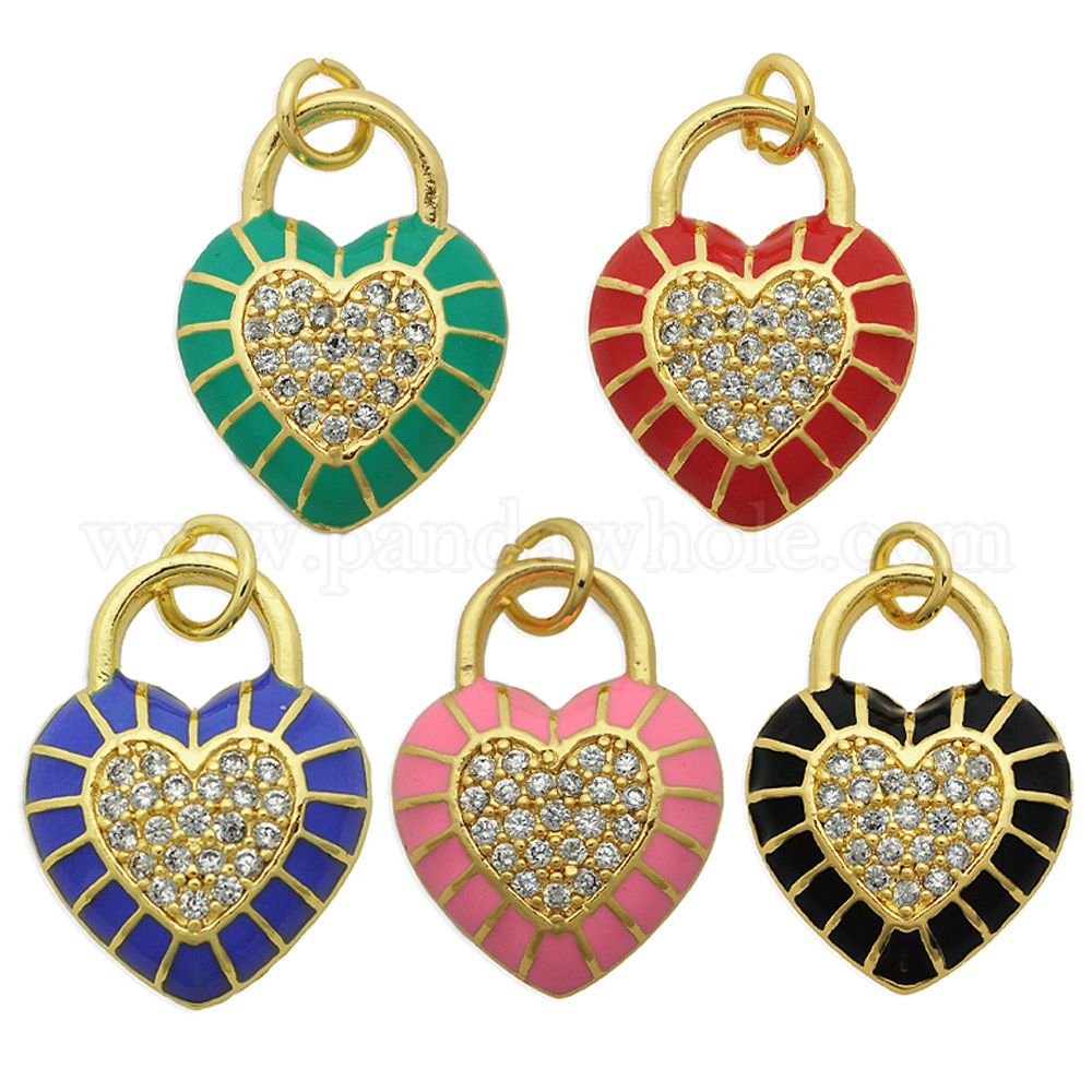 Латунные микропаве прозрачные подвески с фианитом, с эмалью и кольцами для прыжков, золотой свет, без кадмия, без никеля и без свинца, сердце