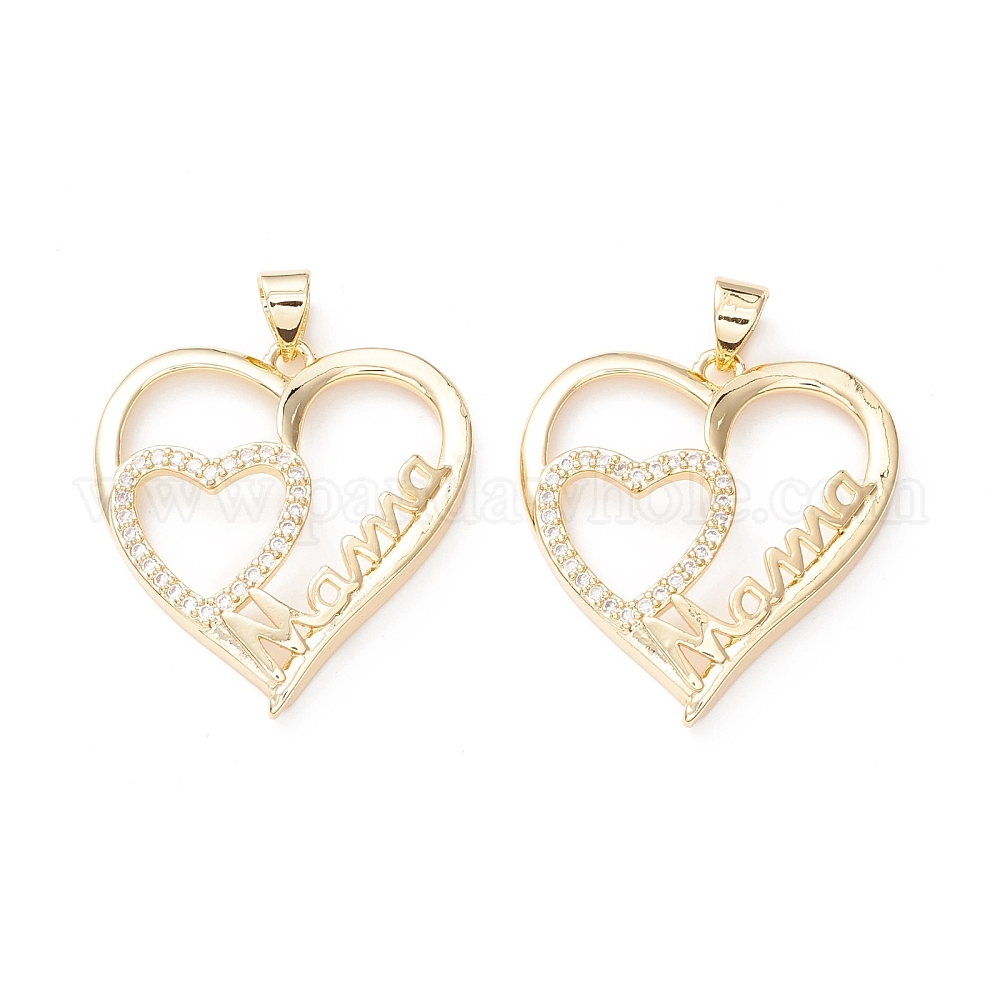 Подвески из латуни с микропаве и прозрачным кубическим цирконием на тему Дня матери, долговечный, без кадмия и без свинца, сердце со словом мама