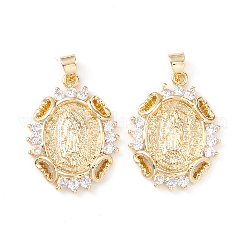 Латунные микропаве прозрачные подвески с фианитом, долговечный, без кадмия и без свинца, ромб со статуей Иисуса Христа