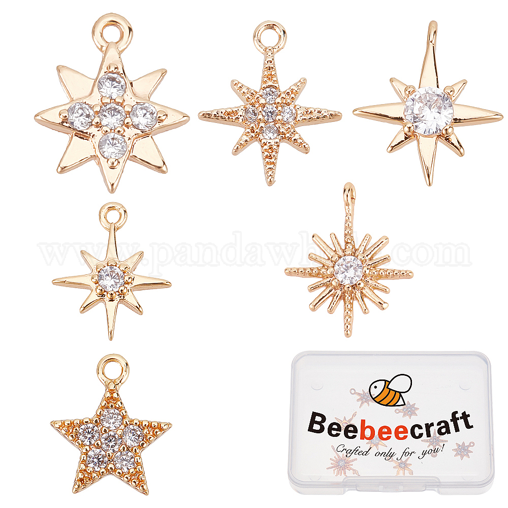 12 шт. 6 долговечные подвески из латуни с микропаве из прозрачного кубического циркония, звезда