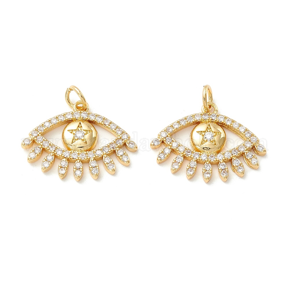 • Настоящее золото 18K Покрытие стойки латунь микропаве прозрачные подвески из кубического циркония, без кадмия, без никеля и без свинца, долговечный, глаз, реальный 18 k позолоченный, 15.5x21x2 мм, отверстие : 3.4 мм