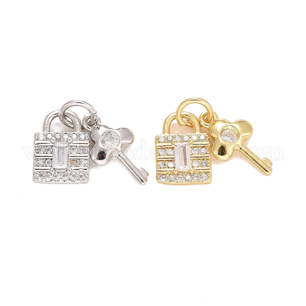 Подвески из кубического циркония с покрытием из латуни, с прыжковых колец, долговечный, без свинца и без кадмия, Замок и ключ