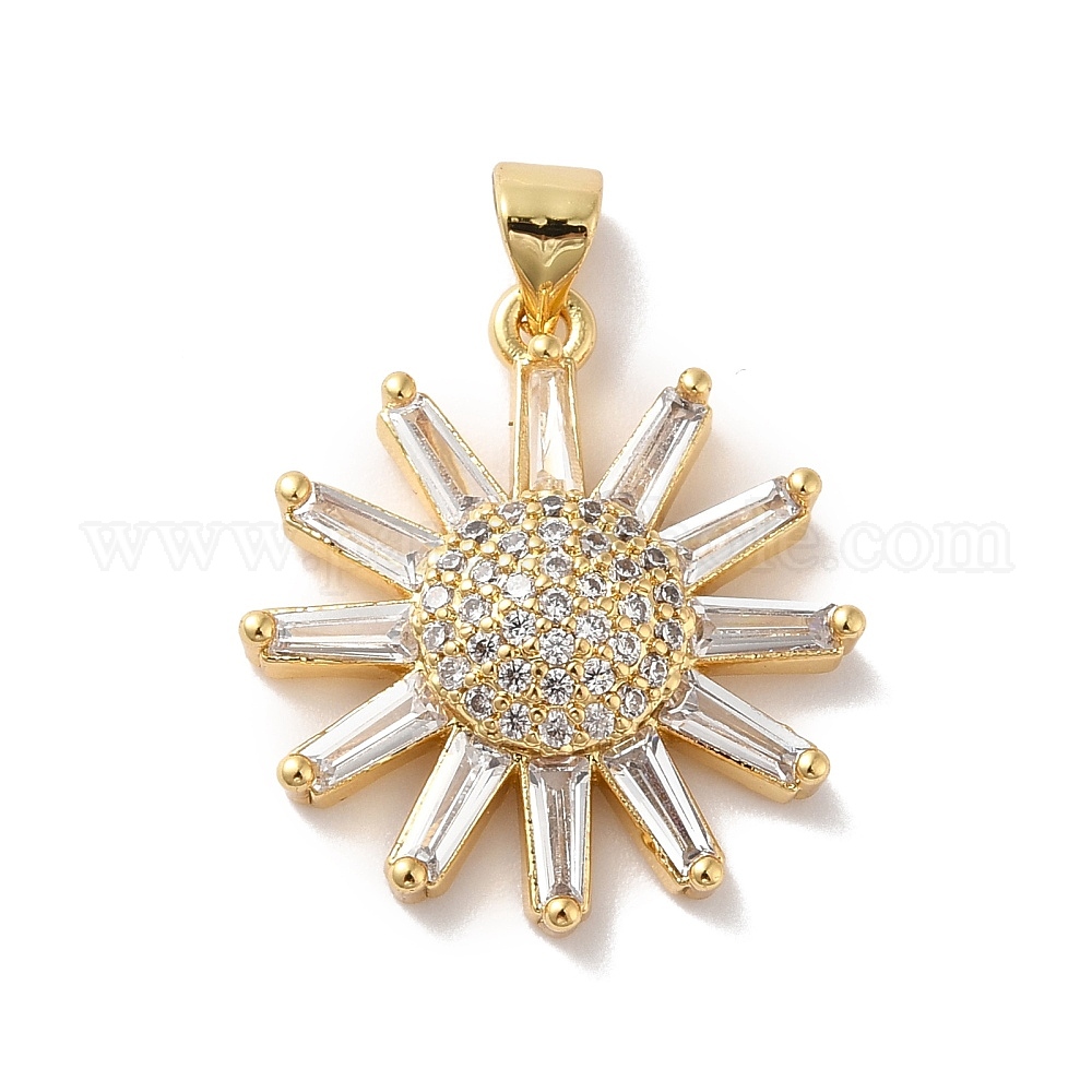 • Прозрачный Стойка металлическая латунная микропрофилированная кубическая циркония подвески, реальный 18 k позолоченный, долговечный, без свинца и без кадмия, цветок, прозрачные, 23x20.5x5 мм, отверстие : 3.7x3.5 мм