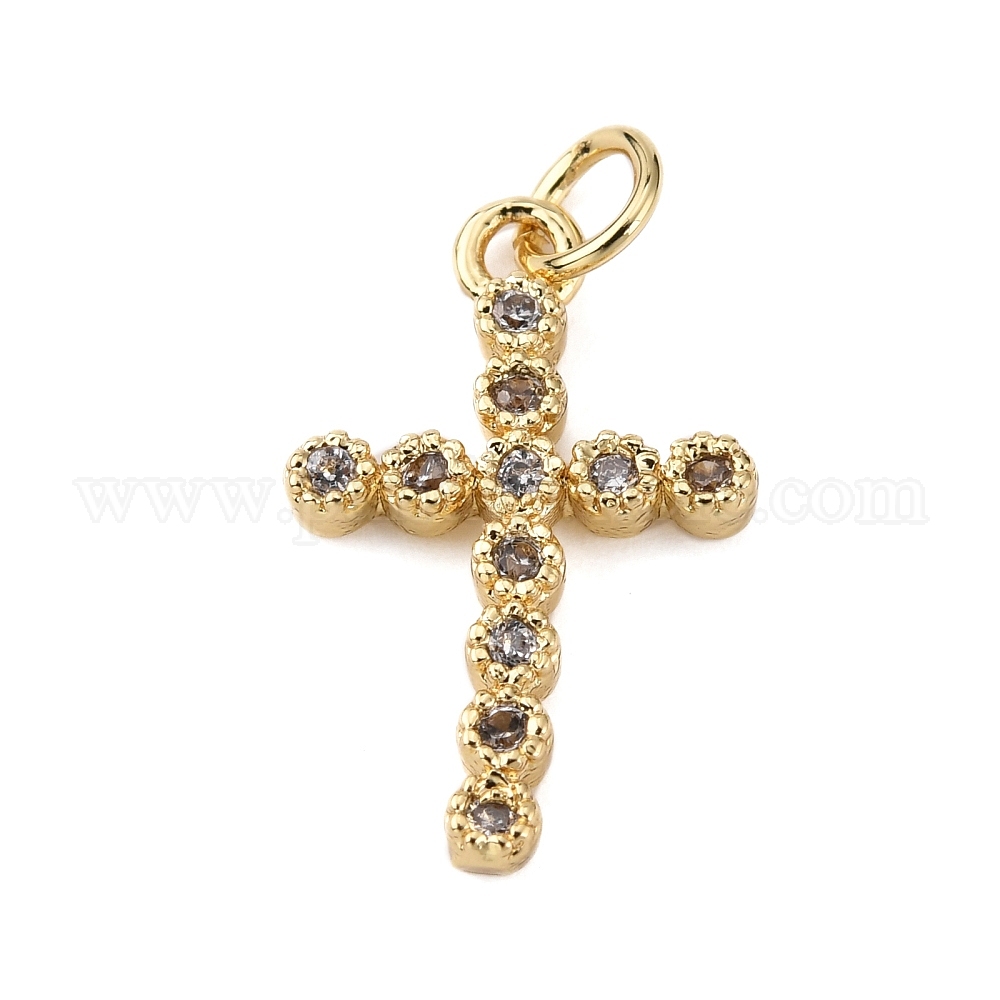 • Настоящее золото 18K Латунные микропаве прозрачные подвески с фианитом, с целью перехода в кольце, крестик, реальный 18 k позолоченный, 20x13x2.5 мм, отверстие : 3 мм