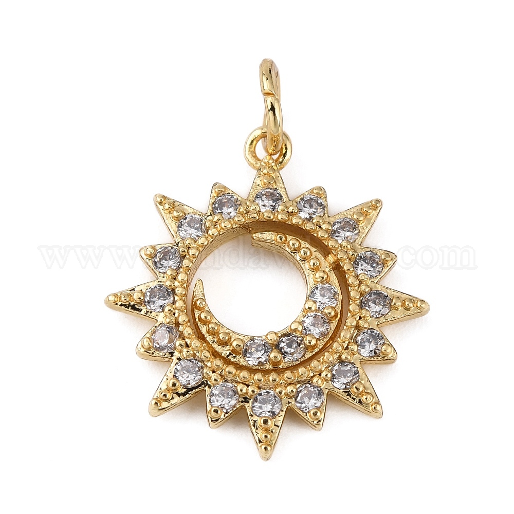 Латунные микропаве прозрачные подвески с фианитом, Вс & луна