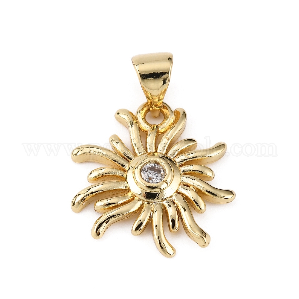 • Настоящее золото 18K Латунные микропаве прозрачные подвески с фианитом, цветок, реальный 18 k позолоченный, 17x16x2.5 мм, отверстие : 3.5x4.5 мм