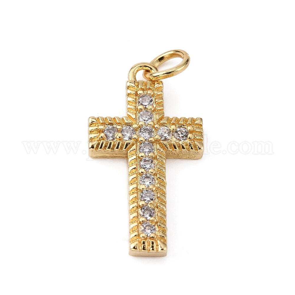 • Настоящее золото 18K Латунные микропаве прозрачные подвески с фианитом, с целью перехода в кольце, крестик, реальный 18 k позолоченный, 20.5x11.5x2.5 мм, отверстие : 3.4 мм