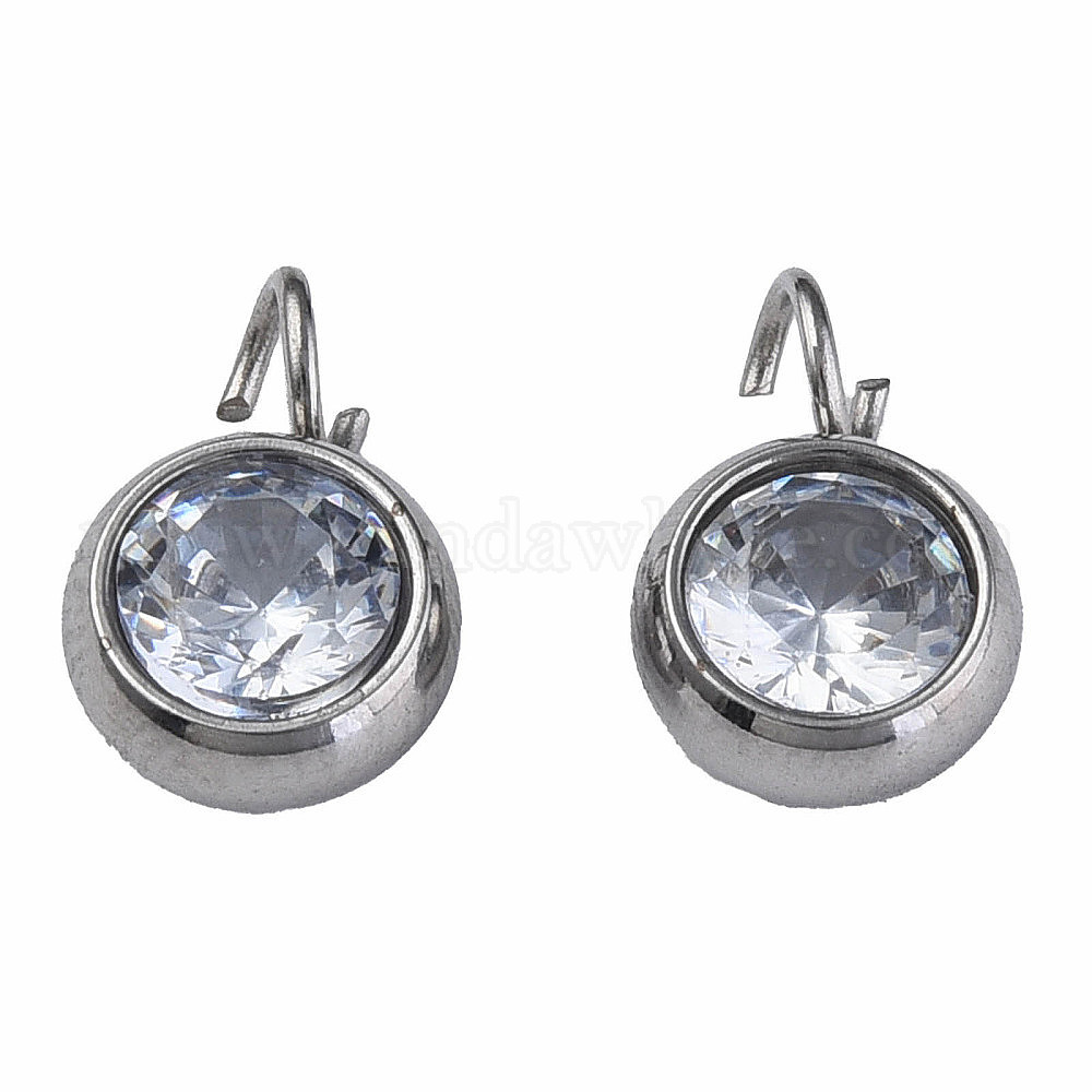 201 подвески из прозрачного кубического циркония из нержавеющей стали, плоско-круглые