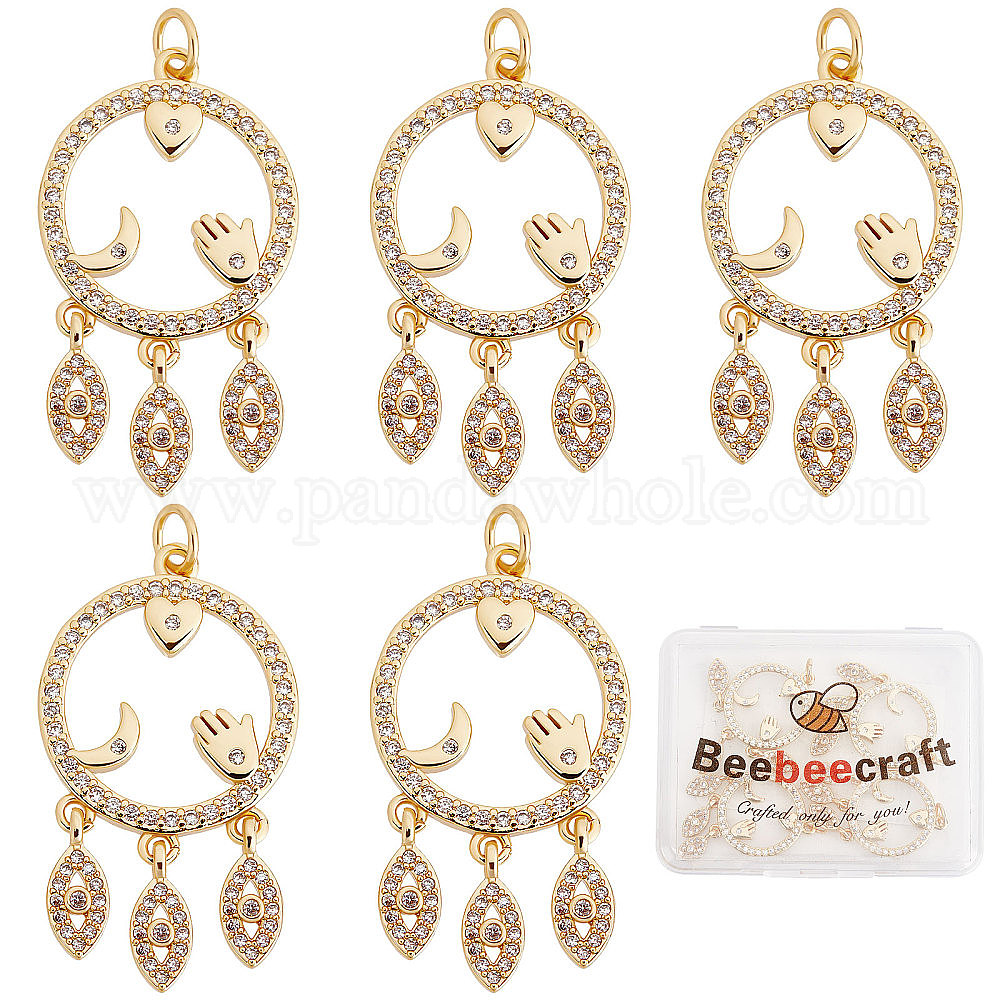 Покрытие стойки латунь микропаве прозрачные подвески из кубического циркония, с прыжковых колец, кольцо, сердце, луна, ладонь и конский глаз