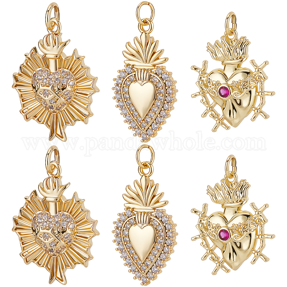 6 шт. 3 подвески из латуни с микропаве из прозрачного кубического циркония, без кадмия, без никеля и без свинца, долговечный, с целью перехода в кольце, святое сердце