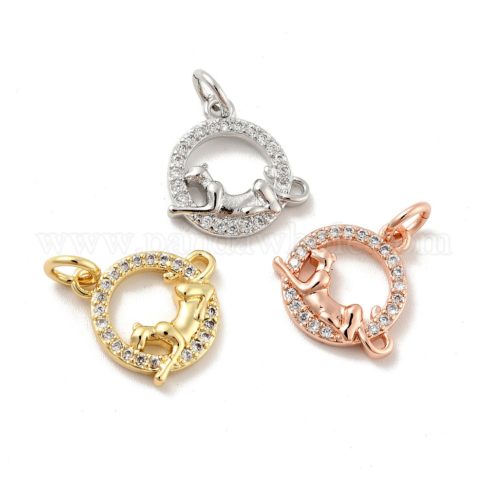 • Розовое Золото Кольцо с леопардовым принтом, подвески из латуни с микропаве, прозрачные фианиты, с прыжковых колец, без кадмия и без свинца, розовое золото , 14x13x2.5 мм, отверстие : 3.1 мм