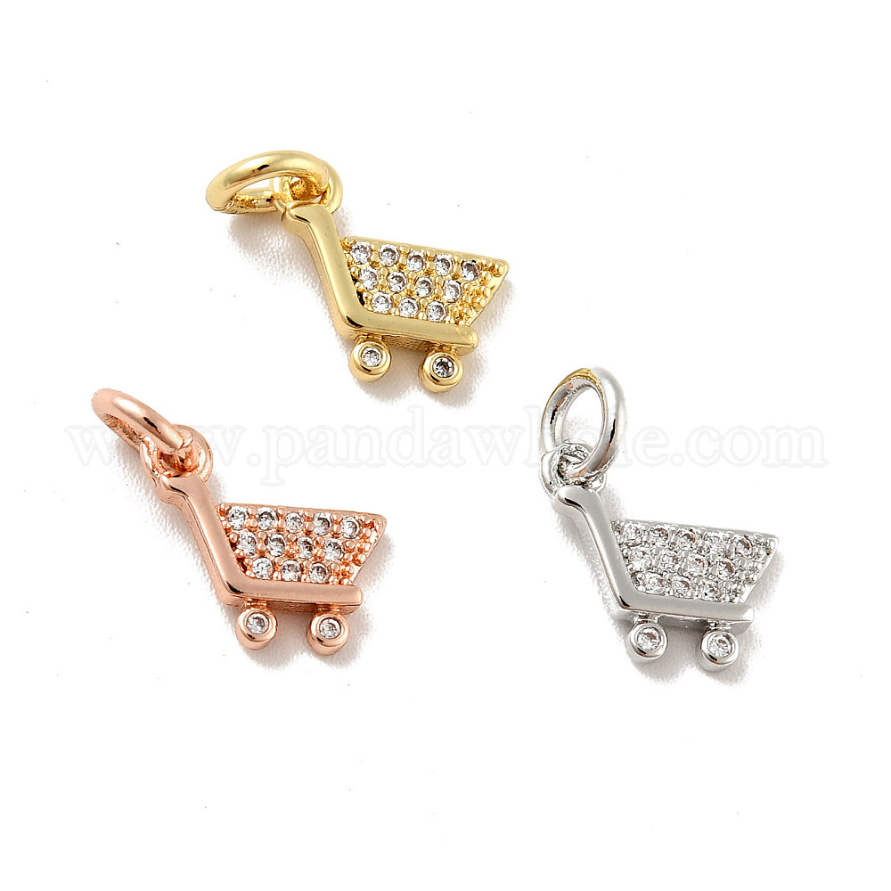 Корзина для покупок подвески из латуни с микропаве из прозрачного кубического циркония, с прыжковых колец, без кадмия и без свинца