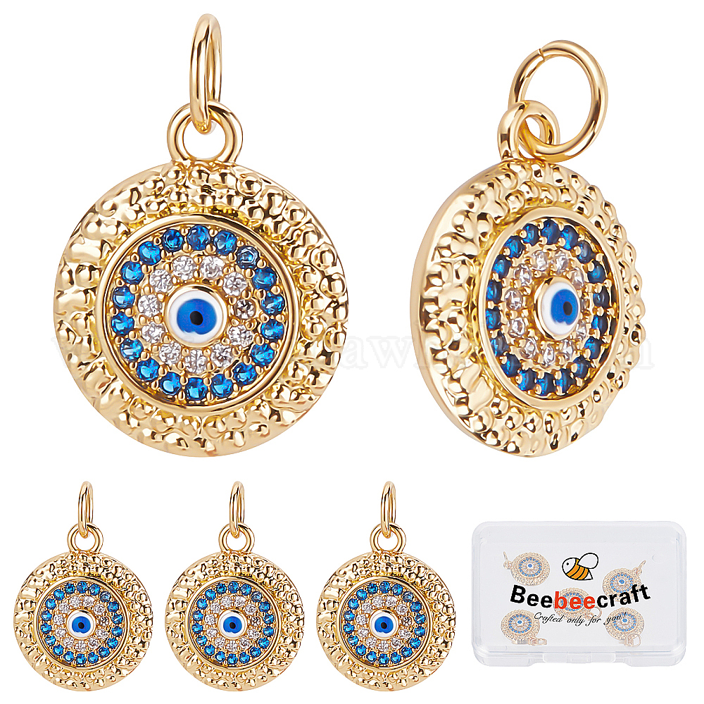 • Настоящее золото 18K Латунные микро проложить кубического циркония подвески, с эмалью, долговечный, без кадмия и без свинца, плоские круглые с сглаза, реальный 18 k позолоченный, 15x12.5x3.5 мм, отверстие : 3.6 мм, 5 шт / коробка