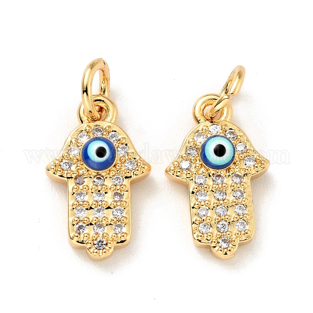 Кулоны из экологически чистой латуни с прозрачным кубическим цирконием, с эмалью и кольцом для прыжков, без кадмия и без свинца, рука хамсы / рука мириам со сглазом