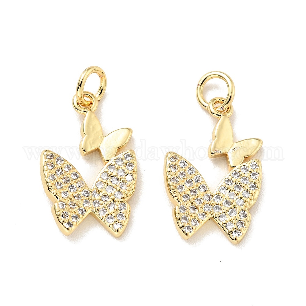 • Настоящее золото 18K Кулоны из экологически чистой латуни с прозрачным кубическим цирконием, с целью перехода в кольце, без кадмия и без свинца, бабочка, реальный 18 k позолоченный, 18.5x12x2 мм, отверстие : 3 мм