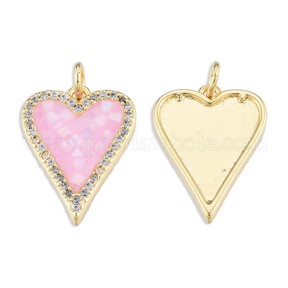 • Pink Латунные микропаве прозрачные подвески с фианитом, с кольцами и оболочкой, эмаль, реальный 18 k позолоченный, без никеля , сердце, розовые, 20x14.5x3 мм, Перейти кольцо: 5x1 мм, 3 мм внутренним диаметром