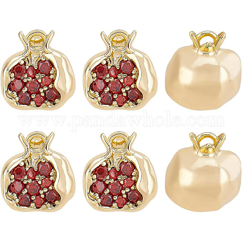 • Настоящее золото 18K Латунные подвески из шоколада с микропаве и кубическим цирконием, гранат, реальный 18 k позолоченный, 10.5x10x7 мм, отверстие : 1.4 мм, 6 шт / коробка